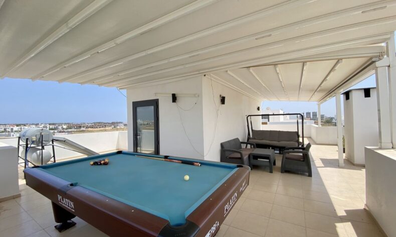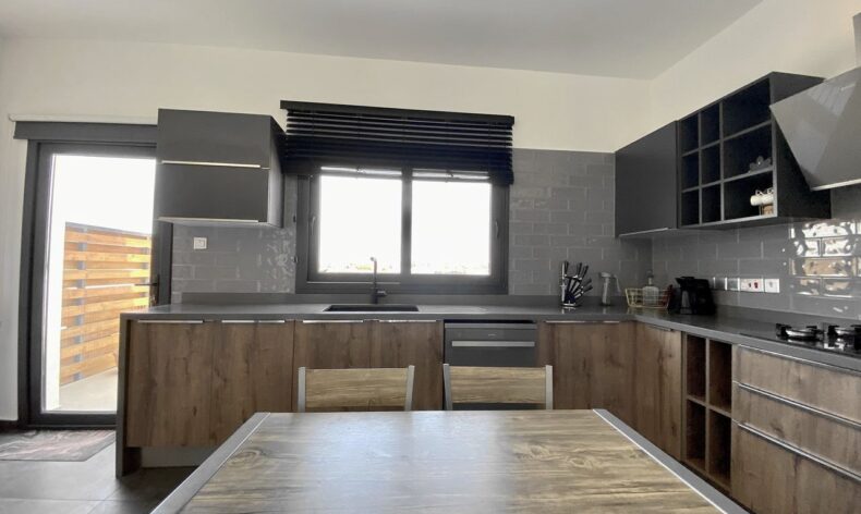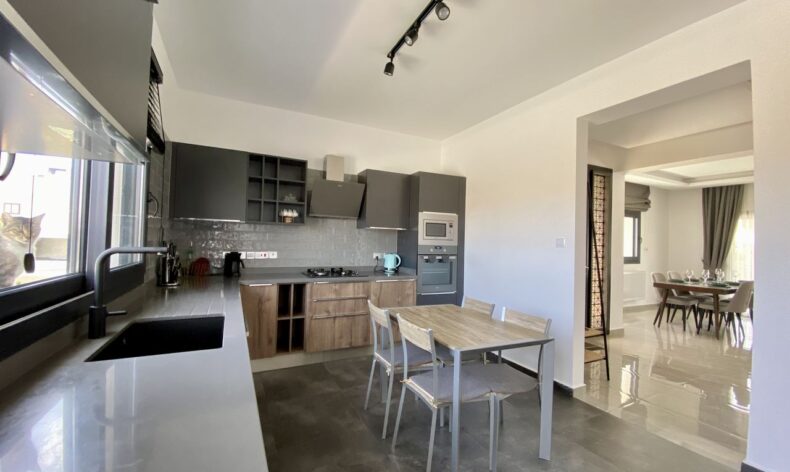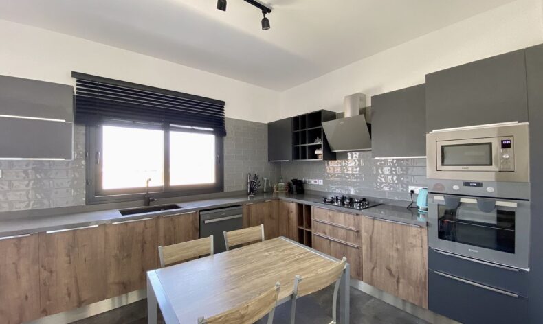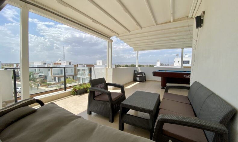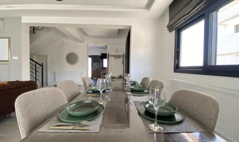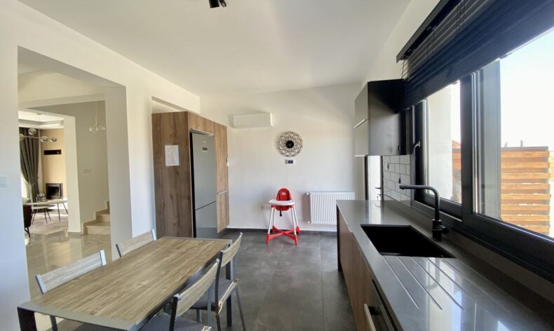 Таунхаус с мебелью и необходимыми для комфортного проживания техникой и оборудованием. 3 спальни, 3 санузла, гардеробная. Есть просторная терраса на крыше, место для приятного времяпрепровождения в кругу семьи, есть парковка, зона отдыха, барбекю зона, много зелени и деревьев.