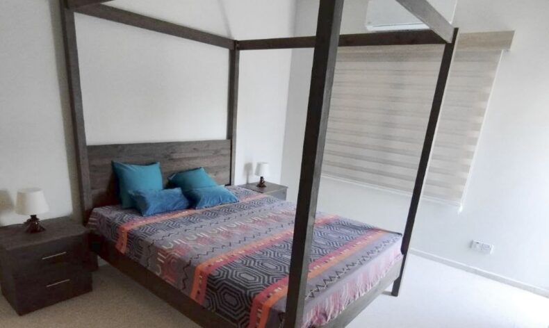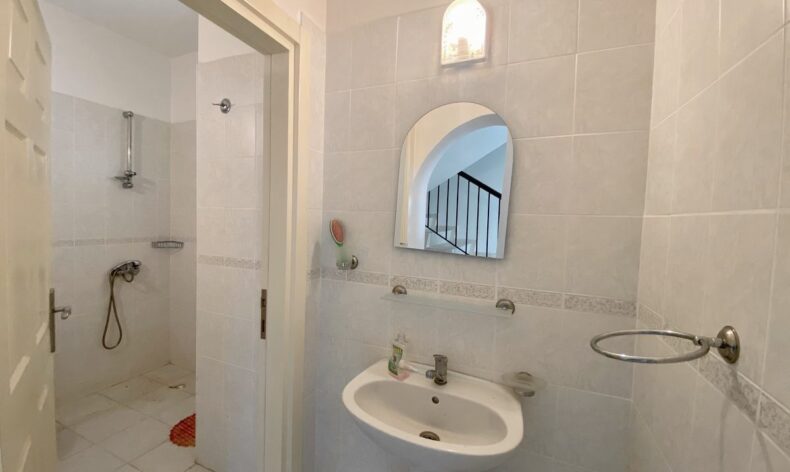 На второй этаж ведет удобная двухмаршевая лестница из мрамора. На этаже три спальных комнаты с прекрасными видами на горную часть ривьеры и зеленую общественную территорию поселка. Также на этаже имеется санузел с ванной и кладовая комната. Окна закрываются металлическими жалюзи и москитными сетками.