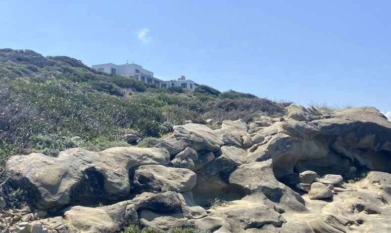 Территория поселка огорожена, доступ на въезд осуществляется через кодовый шлагбаум. В центре располагается бассейн и детская мини-площадка. За 3 мин. пешком по живописной каменистой тропинке можно дойти до скрытого от посторонних глаз пляжа. В 5 минутах езды на авто есть прекрасный песчаный пляж.