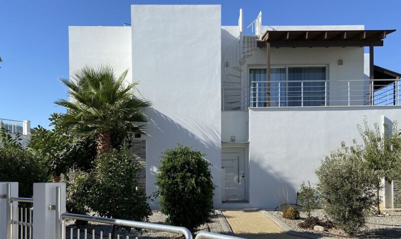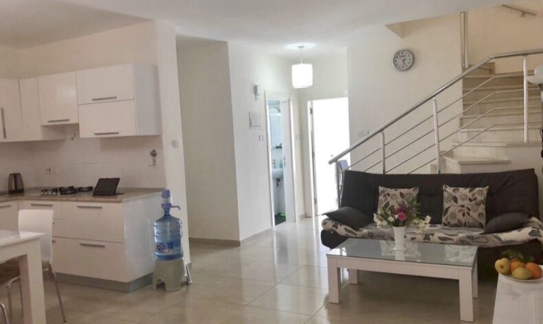 Предлагается в аренду двухэтажный таунхаус с тремя спальными комнатами на первой береговой линии Средиземного моря в приватном комплексе Цезарь Бич в районе поселка Богаз, Северный Кипр.
