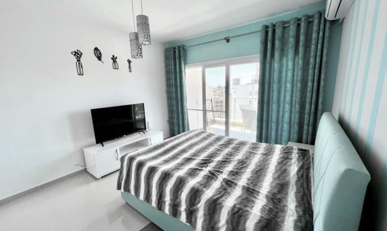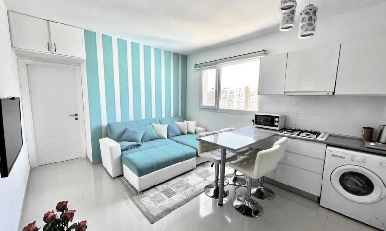 Сдается квартира 1+1 в современном жилом комплексе Цезарь Резорт с прекрасной внутренней инфраструктурой на берегу Средиземного моря в районе Искеле, в пешей доступности от самого популярного на всем побережье и самого протяженного пляжа Лонг Бич.