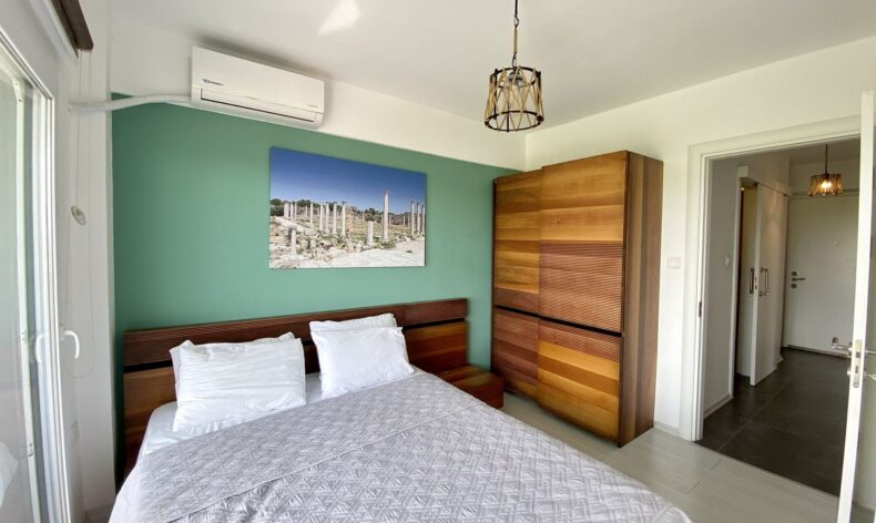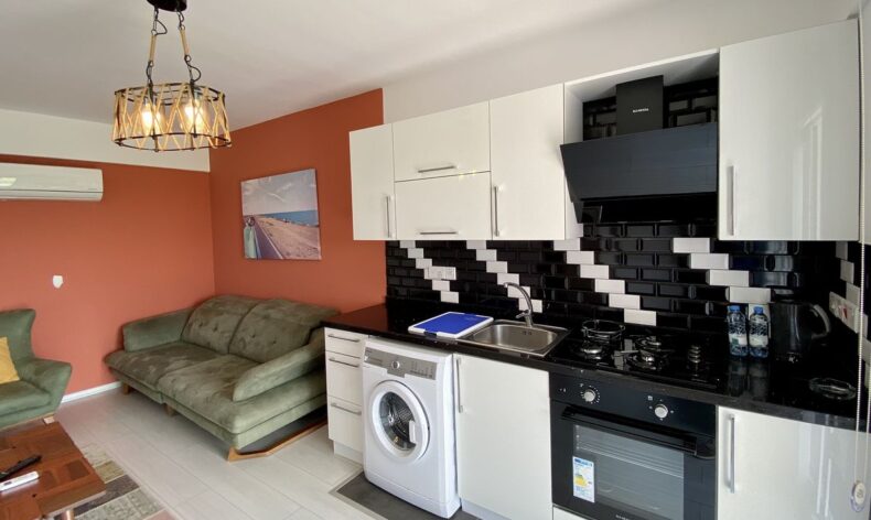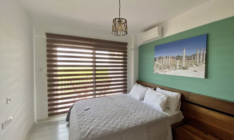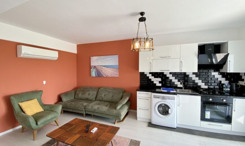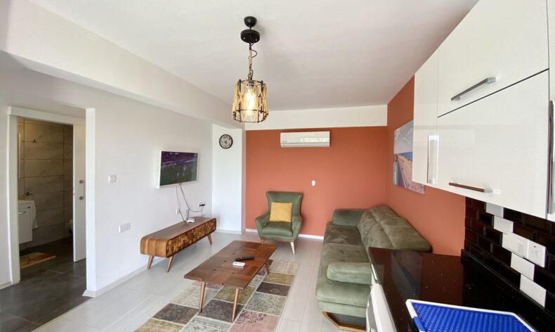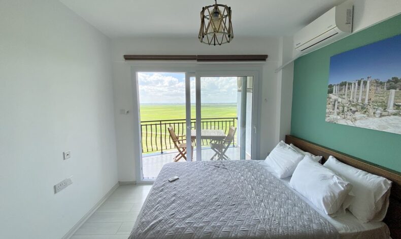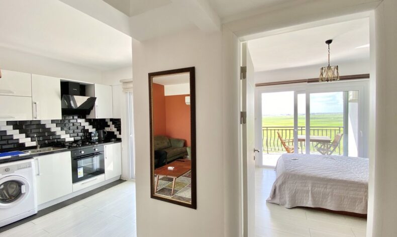 Сдается в аренду уютная квартира 1+1 с прекрасным панорамным видом на море и зеленое поле в жилом комплексе Эдельвейс, в непосредственной близости от пляжей Лонг Бич в районе Искеле.