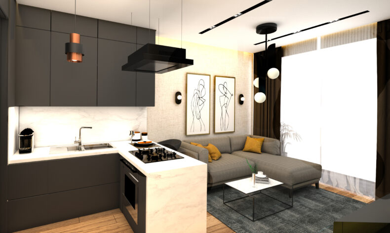 Проект представлен 9 этажным блоком с апартаментами 1+1, 1+1 с террасой, 1+1 лофт, 2+1, пентхаусами и коммерческими помещениями. В нем представлены эксклюзивно спроектированные и полностью готовые к проживанию апартаменты с видом на море. Все апартаменты идут в полной чистовой отделке люкс: стильный кухонный гарнитур, полная комплектация и отделка санузлов.