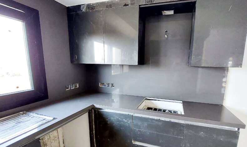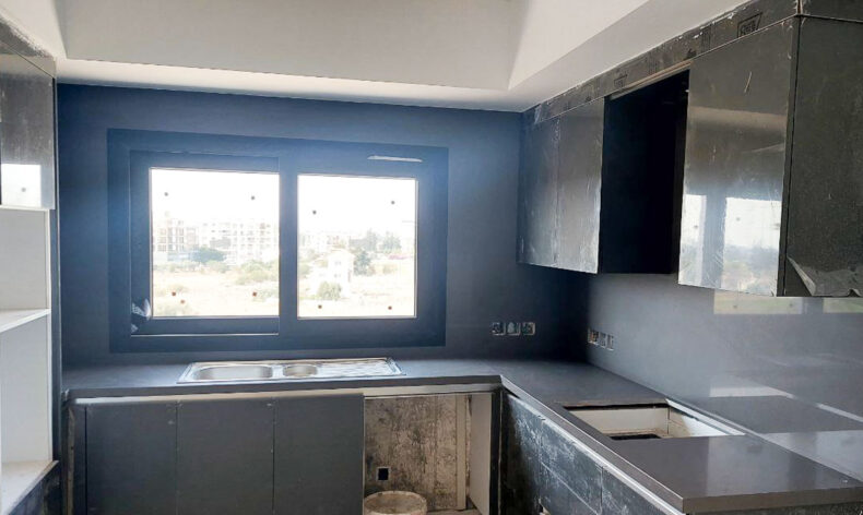 Просторная квартира с планировкой 2+1 на пятом этаже семиэтажного дома. Общая площадь составляет 92 квадратных метра, а также есть балкон площадью 3 квадратных метра. Квартира предлагает вид на поля и другие дома, что добавляет атмосферу тишины и спокойствия. Гостиная совмещена с кухней, и вместе они создают просторное и уютное пространство для общения и приема гостей. Кухня выполнена на заказ из тёмно-серого гранитного камня, что придает ей стильный и современный вид. Техника включает в себя все необходимое для комфортного приготовления пищи и хранения продуктов. Квартира оснащена тремя кондиционерами, что обеспечивает комфортную температуру в жаркое время года. В квартире предусмотрены две спальни, обеспечивая уединенное пространство для отдыха и сна. Ванная комната снабжена всем необходимым для комфортного использования. Шкафы и кухонная мебель предоставляют достаточно места для хранения вещей и кухонной утвари. Это прекрасное жилье, которое сочетает в себе уют, стиль и функциональность. Стоимость 88 000 £.