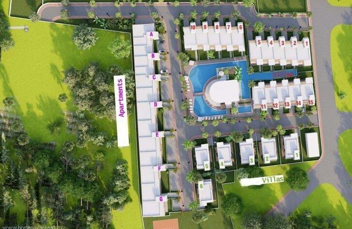 Проект занимает территорию площадью 20 000 кв. м, включает комфортабельные апартаменты и таунхаусы различной площади, а также отдельно стоящие виллы с тремя и четырьмя спальнями с собственным участком и бассейном. Все апартаменты и виллы идут с чистовой отделкой, полностью оборудованными ванными комнатами, кухнями со встроенными гарнитурами, шкафами для хранения в спальнях. С просторных балконов открывается вид на финиковые пальмы и банановые деревья, а также на зеленую зону вокруг бассейна.