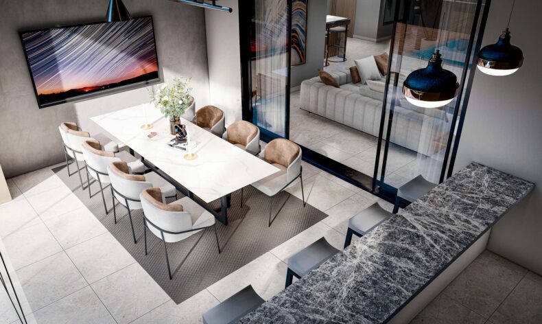 Вилла общей площадью 340 квадратных метров, которая олицетворяет собой идеальное сочетание комфорта и простора для вашей семьи. На первом этаже этой двухэтажной виллы расположена просторная кухня-гостиная, создающая уютную атмосферу для семейных посиделок и встреч. Также на этом этаже есть одна спальня и один санузел, обеспечивающие удобство и комфорт для жильцов. На втором этаже находятся три дополнительные спальни, каждая из которых имеет свой собственный санузел. Это обеспечивает максимальную приватность и комфорт для всех членов семьи или гостей. На территории виллы имеется парковка на два автомобиля, что делает хранение автомобилей удобным и безопасным. Также есть терраса, где можно проводить время на свежем воздухе, наслаждаясь прекрасным климатом и пейзажами. И, конечно, не обойдется без бассейна, который станет прекрасным местом для отдыха и развлечений в жаркие дни. Эта вилла идеально подходит для тех, кто ценит комфорт, простор и стильный дизайн в своем жилье, а также хочет наслаждаться высоким уровнем удобств и роскоши. Стоимость 385 000 £.