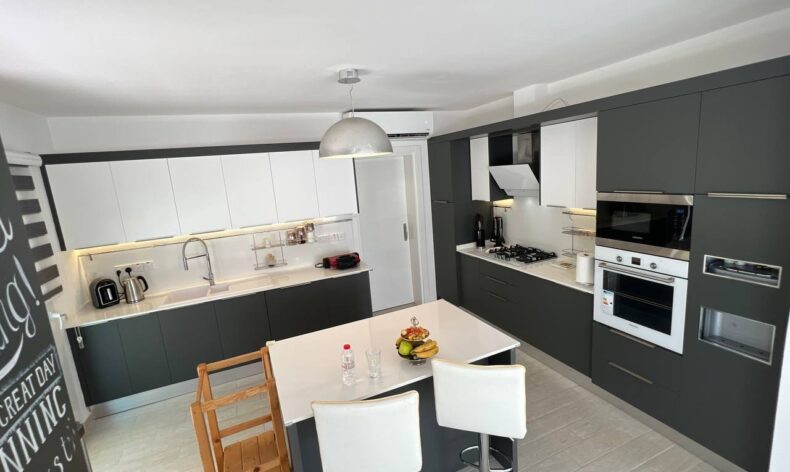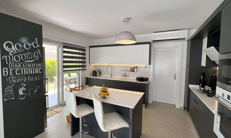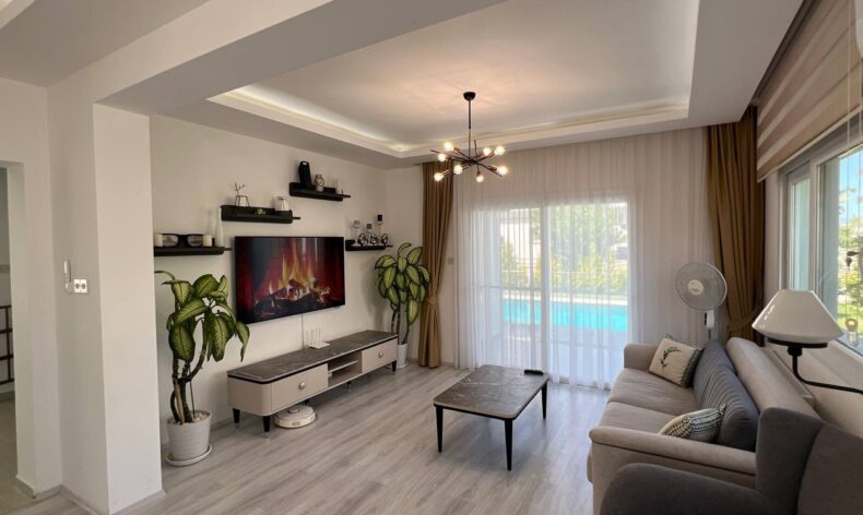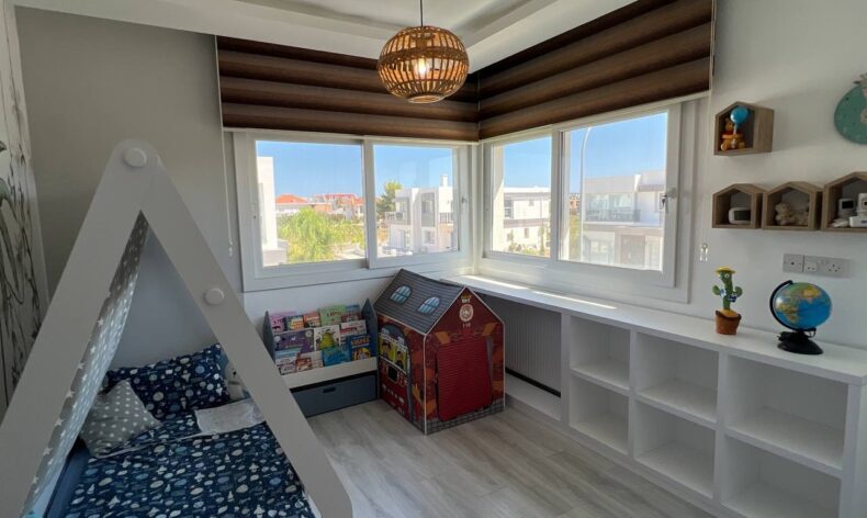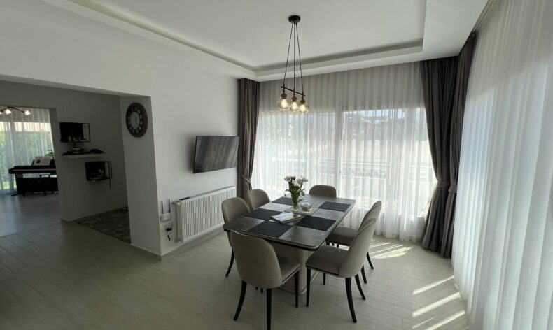 На продажу выставлена эксклюзивная вилла 4+2 в жилом комплексе Four seasons villas в районе Йени Богазичи. Вилла расположена напротив отеля Саламис, в 10 минут пешком до пляжа. Площадь виллы 250 м². Вилла идет с 4 спальнями+ отдельная гостиная с камином, 2 кухни, 3 санузла, гардеробная, кладовка, хозблок. На участке 6,5 соток расположен бассейн площадью 36 м² , сад и парковка. На вилле проведено газовое отопление. Она оснащена теплыми полами, системой видеонаблюдения и системой автополива для зеленых насаждений. Стоимость виллы включает всю технику и мебель. Цена 390 000 £.