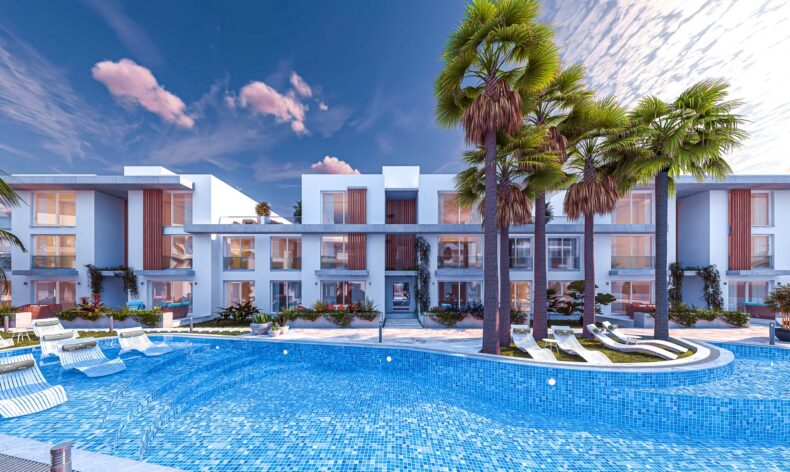 Olive Court 2 представляет собой впечатляющий жилой комплекс, благоприятно расположенный в живописном районе Йени Богазичи на Кипре. Этот проект идеально подходит для тех, кто ценит комфортное проживание в тихом районе, окруженном природой и находящемся в самом сердце Средиземноморья. Состоящий из семи двухэтажных блоков, Olive Court 2 предлагает роскошные квартиры и таунхаусы различных планировок, обеспечивая уникальные возможности для жизни в окружении вечнозеленых тропических садов, оливковых рощ и экзотических фруктовых деревьев.