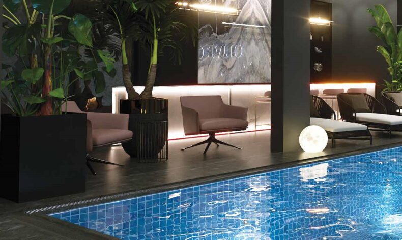 На охраняемой территории комплекса предусмотрена разнообразная инфраструктура, которая отвечает всем потребностям жителей любого возраста. Игровые площадки и бассейны для детей, а для взрослых — подземная инфраструктура СПА, массажные комнаты, тренажерный зал, комнаты для релакса, зоны для занятия йогой, крытый бассейн. По замыслу архитекторов благоустройство комплекса реализуется по индивидуальному ландшафтному дизайну и будет соответствовать окружающей среде, бассейны в виде реки, оливковые и фруктовые сады.