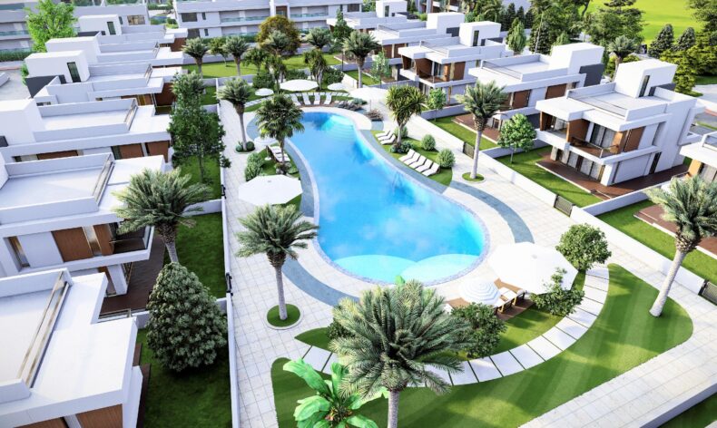 Эксклюзивная вилла 3+1 с индивидуальным выходом к бассейну, расположенная в тихой зоне жилого комплекса. Общая площадь 327 м², закрытая площадь 177 м², терраса на крыше 70 м², 3 санузла. Каждая вилла оборудована просторным балконом с видом на бассейн, собственным участком земли, полностью готовым санузлом, прачечной. есть возможность заказать дизайн пакет.