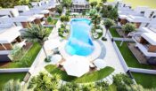 Виллы сгруппированы вокруг приватного бассейна, оборудованного лежаками и зонтиками и окруженного деревьями и цветами. Виллы находятся в непосредственной близости от магазина и парковой зеленой зоны с площадкой для пляжного волейбола, теннисным кортом и детской игровой площадкой.