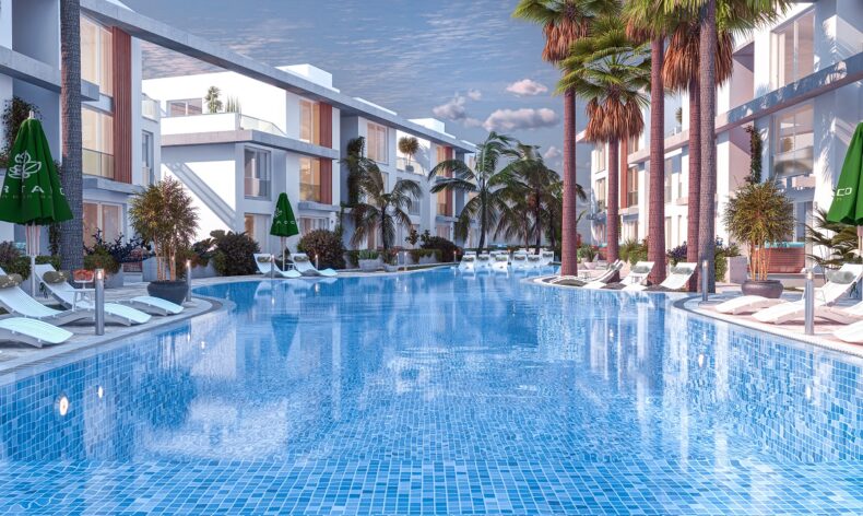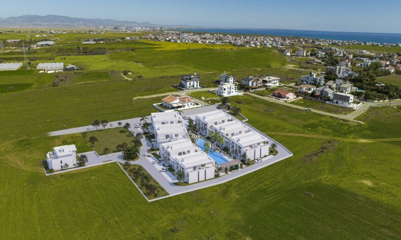 Комплекс находится на закрытой территории в окружении вечнозеленых тропических садов, оливковых рощ, экзотических фруктов и имеет инфраструктуру роскошного бутик-отеля с множеством зон отдыха, игр, семейного времяпровождения и фитнес-активностей. В комплексе будет открытый и закрытый бассейны, спа, хамам, парная, фитнес зал и кофейня. Расстояние от комплекса до центра города Фамагуста составляет 10 км. Вблизи так же находится шикарный песчаный пляж Лонг Бич, который входит в Топ Европейских пляжей, а также пляж Коджареис, парк Йени Богазичи, колледж Near Est. Всего лишь 7 минут составит дорога до таких культурных достопримечательностей, как Монастырь Варнавы, Саламинский лес и древний город Саламин.