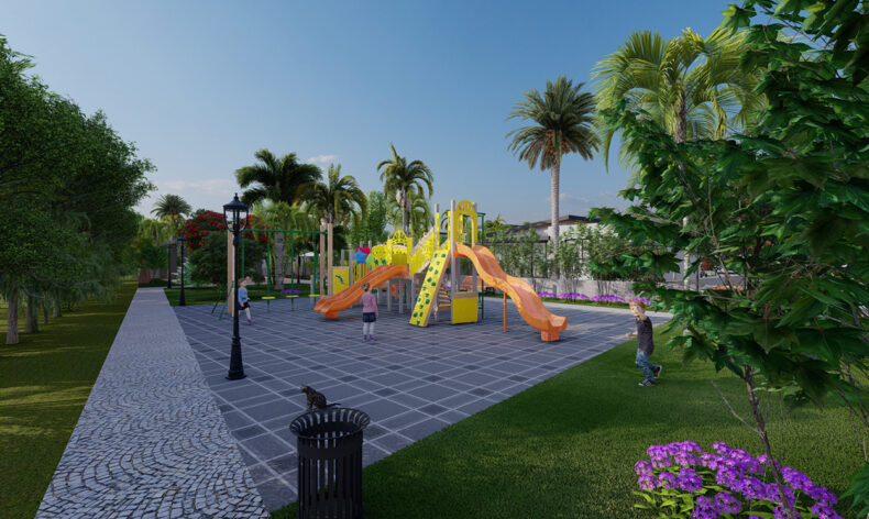 На территории комплекса есть пешеходные дорожки, детская площадка, открытый бассейн, баскетбольная площадка, зоны отдыха у бассейна. Место, где учтены все потребности будущих жителей, где все, даже любая мелочь, спроектировано с изысканным вкусом и функционально использовано.
