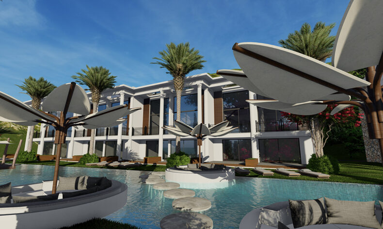 Жилой комплекс состоит из широкого выбора апартаментов от студий до пентхаусов и просторных вилл. Проект разделен на две фазы, с различными типами недвижимости на выбор, включая роскошные виллы, просторные апартаменты и пентхаусы. Первая фаза состоит из 289 квартир. Это апартаменты 1+1, а также уникальные и современные виллы, спроектированные в соответствии с концепцией бутик-отеля. Вторая фаза состоит из 145 квартир, спроектирована вокруг холма и, следовательно, имеет каскадность. Это апартаменты 1+1, пентхаусы 2+1 и бунгало с 2-3 спальнями. В зависимости от варианта выбранных апартаментов, приятным дополнением будет собственный сад, просторная терраса или личный бассейн. Все апартаменты полностью меблированы и идут в чистовой отделке люкс: выделенное парковочное место, инфраструктура кондиционирования воздуха, окна с двойным остеклением, современная кухня и ванная комната, встроенная сантехника. Все коммуникации готовы к использованию.
