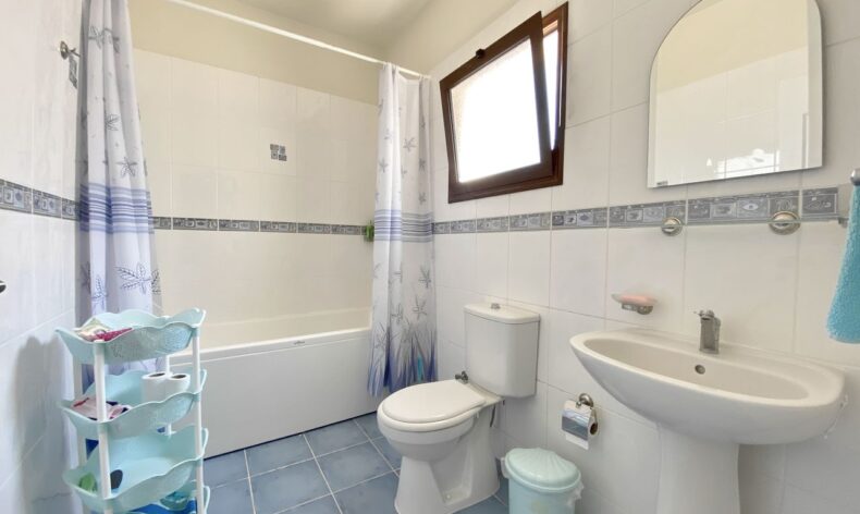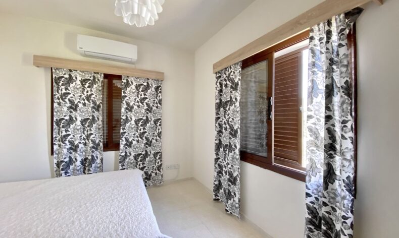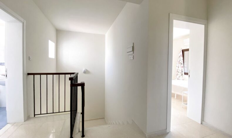 На второй этаж ведет удобная двухмаршевая лестница из мрамора. На этаже три спальных комнаты с прекрасными видами на горную часть ривьеры и зеленую общественную территорию поселка. Также на этаже имеется санузел с ванной и кладовая комната. Окна закрываются металлическими жалюзи и москитными сетками.