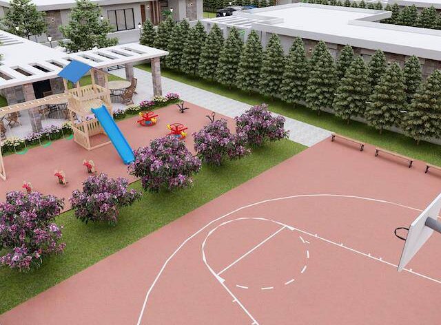 На территории комплекса есть пешеходные дорожки, детская площадка и баскетбольная площадка. Место, где учтены все потребности будущих жителей, где все, даже любая мелочь, спроектировано с изысканным вкусом и функционально использовано.