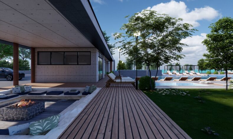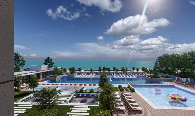 Комплекс имеет впечатляющую зону отдыха с 4 большими бассейнами и прекрасным садом, просторные солнечные зоны с шезлонгами, а также ресторан и уютный бар. Отсюда открывается захватывающий вид на Средиземное море. Идеальное место, чтобы наслаждаться коктейлем или кофе. На территории комплекса также есть фитнес-центр, закрытый бассейн, спа, сауна, хамам, детская площадка, детский сад, консьерж сервис, клуб водного спорта, панорамный бассейн, окружающий дома, с выходами в бассейн с террас первых этажей и прямой выход на пляж непосредственно с территории комплекса. в комплексе будет своя Аллея звезд, вдохновленная всемирно известной аллеей в подарившем название американском городе для уже запланированных визитов мировых знаменитостей и людей первых в своем деле, обладателей высших достижений.