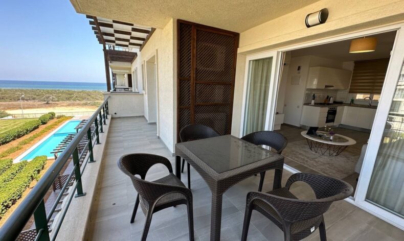 На продажу выставлена роскошная квартира 2+1 с видом на море в масштабном жилом комплексе высококлассных апартаментов Thalassa Beach Resort. Ключи на руках, оперативный показ! Квартира на 2 этаже жилой площадью 80 м² и террасой 30 м². Машиноместо в подарок! Апартаменты с ремонтом, укомплектована встроенными шкафами в каждой комнате, встроенной кухней и техникой из пяти бытовых приборов (стиральная машинка, микроволновка, холодильник, духовой шкаф и духовая плита). Можно уже заезжать и жить!