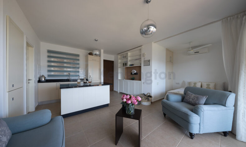 На продажу выставлена эксклюзивная квартира студия с видом на море в масштабном жилом комплексе высококлассных апартаментов Thalassa Beach Resort. Квартира площадью 40 м². Апартаменты на втором этаже в Блоке 14 идут с ремонтом, укомплектованы встроенными шкафами в каждой комнате, встроенной кухней и техникой из пяти бытовых приборов (стиральная машинка, микроволновка, холодильник, духовой шкаф и духовая плита). Можно уже заезжать и жить! Цена 106 000 £.