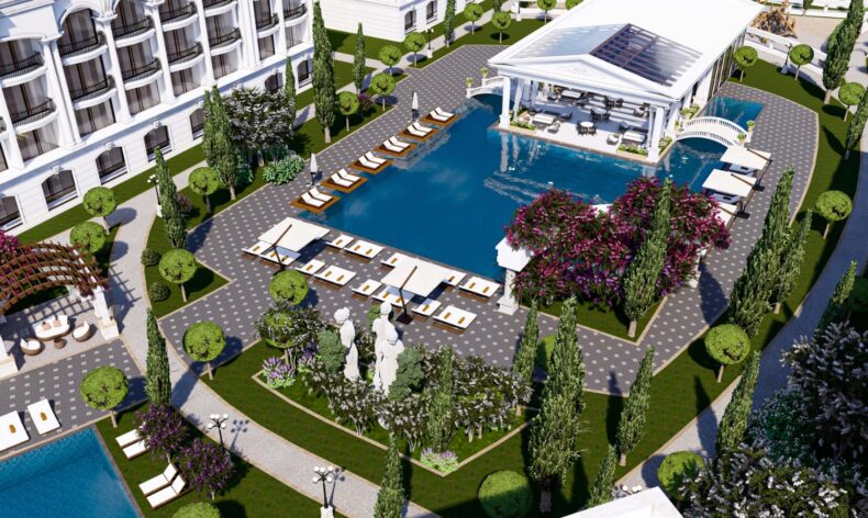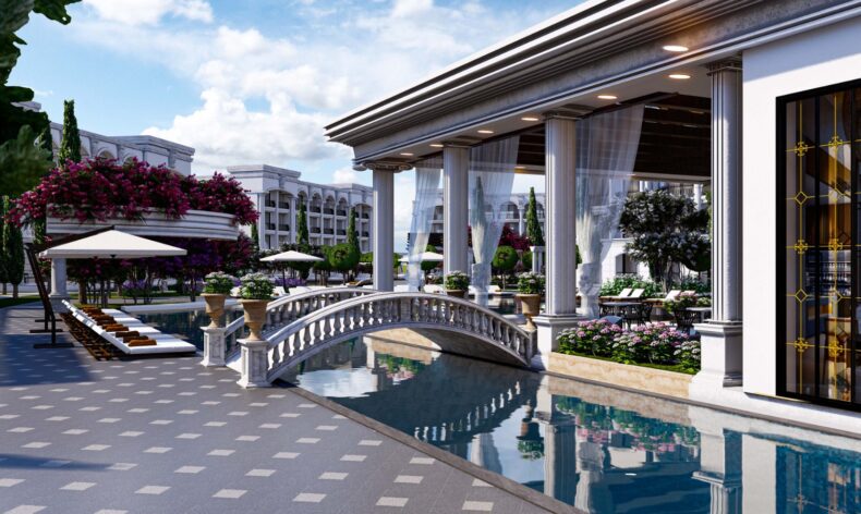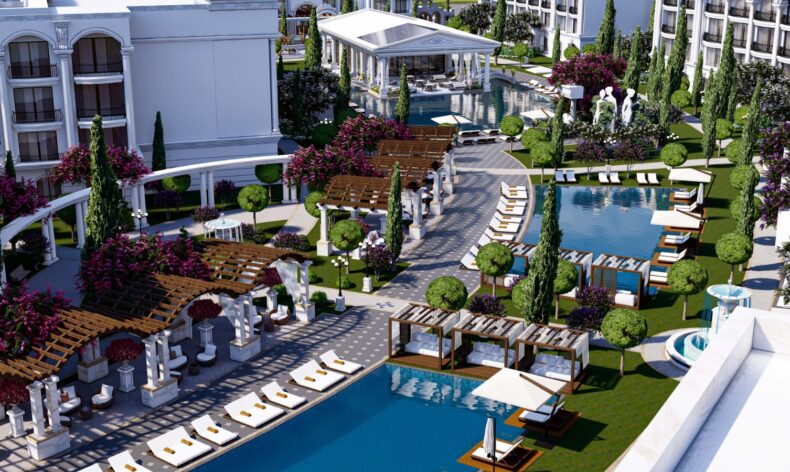Развитая инфраструктура комплекса включает 3 открытых бассейна и 1 крытый бассейн, аква зону, СПА и велнес, детский клуб, тренажерный зал, 2 ресторана (один по меню), бар у бассейна, клуб, дискотеку, гольф-корт, бар на крыше, открытую и закрытую парковки. В комплексе предусмотрена система безопасности 24/7, система горячего водоснабжения и система центрального отопления. Расстояние до моря (со стороны пляжа Мехметчик) составляет 700 метров.