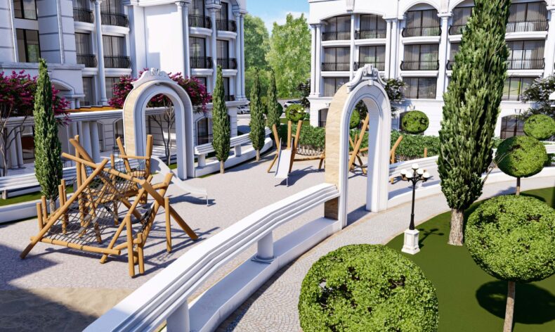 Комплекс представлен 9 блоками в четыре этажа и состоит из апартаментов 1+0, 2+1 и пентхаусов. Планировка каждой квартиры сочетает комфорт и современный дизайн.На каждую квартиру будет оформлен отдельный документ, подтверждающий право собственности. Пакет дизайна включен в стоимость.