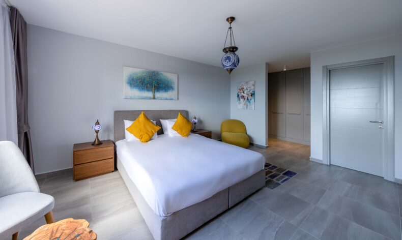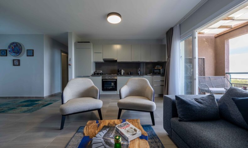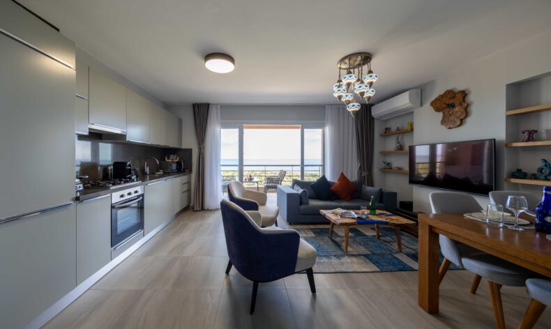 Комплекс Thalassa Beach Resort состоит из студий, элитных апартаментов с 1, 2 и 3 спальнями и пентхаусов с частными террасами на крыше, с которых открываются захватывающие виды на Средиземное море. Планировка каждой квартиры сочетает комфорт и современный дизайн. В квартирах на первом этаже предусмотрены собственные участки с частными бассейнами. В квартирах второго и третьего этажа есть просторные террасы, идеально подходящие для завтраков и ужинов на свежем воздухе. В пентхаусах – большие солнечные террасы на крыше с панорамными видами окрестностей.