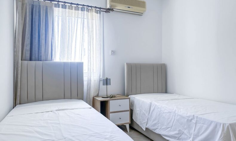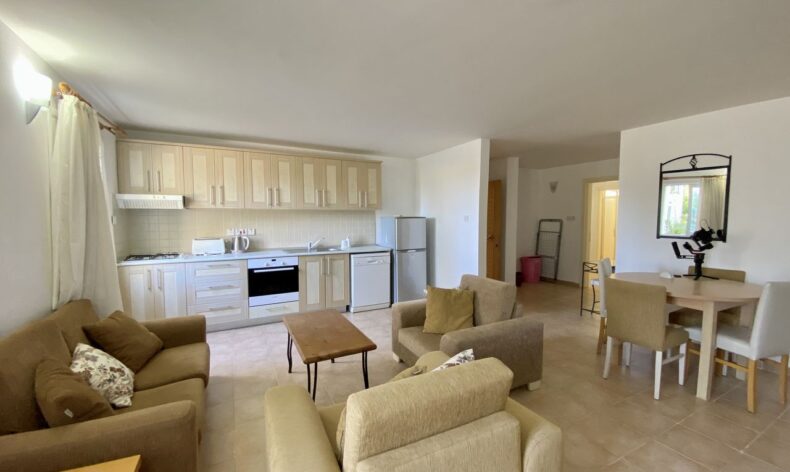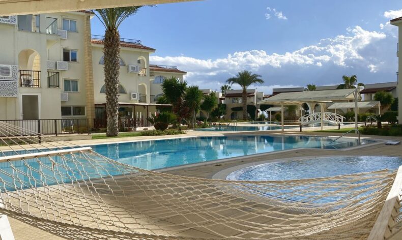 В продаже квартира с двумя спальными комнатами в готовом жилом комплексе на первой береговой линии моря в поселке Богаз, в 50 метрах от пляжа и неподалеку от рыбацкой деревни.