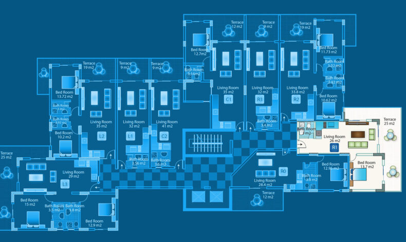 Новый проект Caesar Blue расположен на побережье Северного Кипра, у поселка Богаз, всего в 300 метрах от песчаного пляжа. Это один из немногих комплексов подобного масштаба, находящийся в непосредственной близости от пляжа.