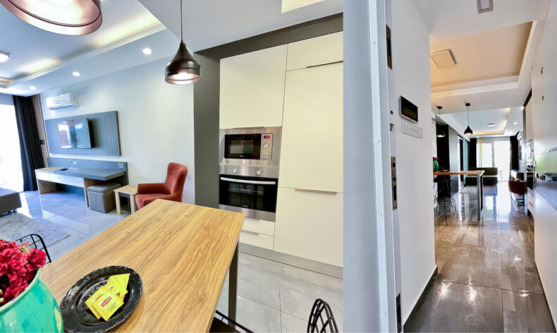 Изысканная квартира 1+1 общей площадью 65 кв.м на втором этаже блока A. Квартира обладает светлым и просторным интерьером, включает один стильный балкон и современный санузел. Объект полностью меблирован и оснащен всей необходимой техникой, создавая условия для мгновенного заселения и комфортного проживания. Стоимость 109 000 £.