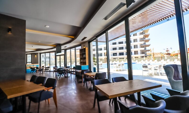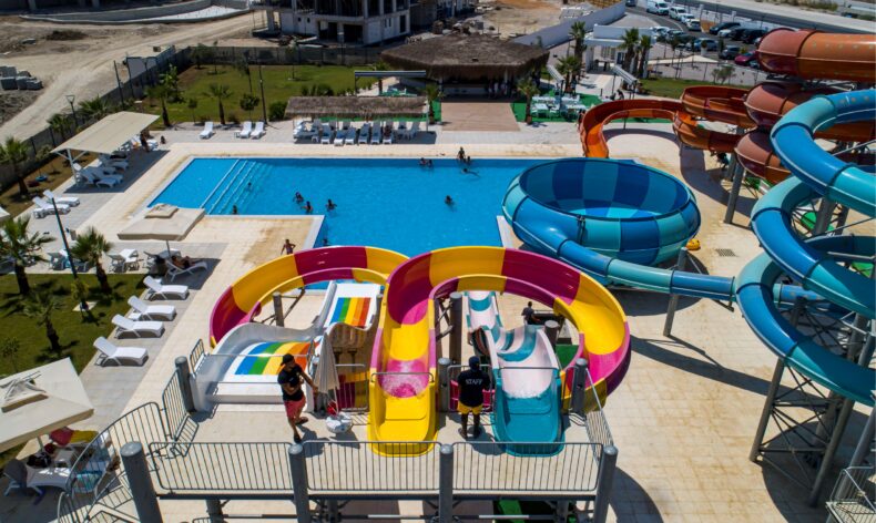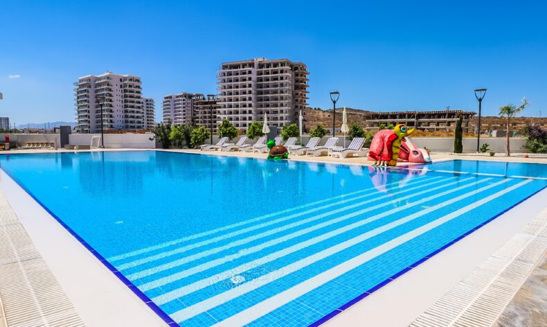 На охраняемой и цветущей круглый год территории комплекса представлен обширный спектр разнообразных услуг: аквапарк с водными горками для всех возрастов, открытые бассейны с шезлонгами и зонтиками, крытый подогреваемый бассейн с сауной и джакузи, а также полностью оборудованный фитнес-центр, детские и спортивные площадки, детский клуб, СПА-центр, ресторан, и многое другое. В комплексе есть собственный песчаный пляж с оборудованной зоной отдыха, пологим входом в море и прочими пляжными активностями. Комплекс находится в шаговой доступности от центра города и современной инфраструктуры. Расстояние до Бафры (туристический центр) займет 15 минут, расстояние до аэропорта Эрджан составит 40 минут и 45 минут до аэропорта Ларнаки.