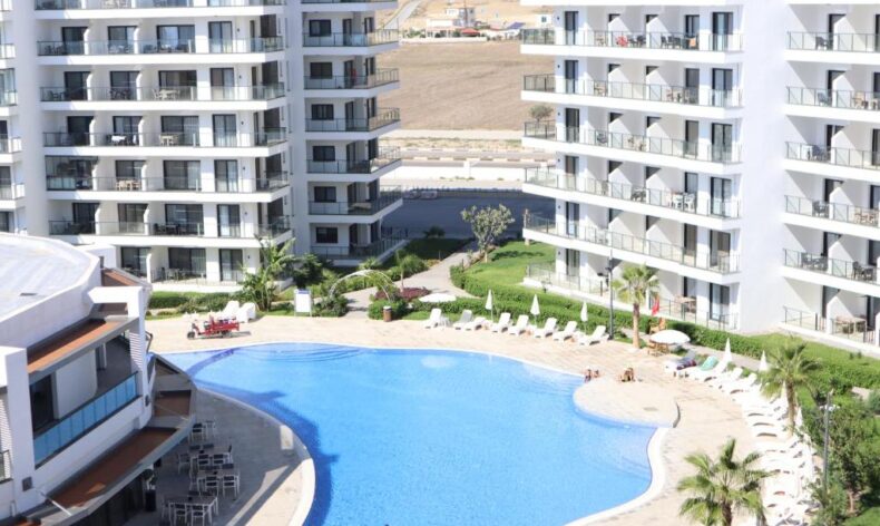 На охраняемой и цветущей круглый год территории комплекса представлен обширный спектр разнообразных услуг: аквапарк с водными горками для всех возрастов, открытые бассейны с шезлонгами и зонтиками, крытый подогреваемый бассейн с сауной и джакузи, а также полностью оборудованный фитнес-центр, детские и спортивные площадки, детский клуб, СПА-центр, ресторан, и многое другое. В комплексе есть собственный песчаный пляж с оборудованной зоной отдыха, пологим входом в море и прочими пляжными активностями. Комплекс находится в шаговой доступности от центра города и современной инфраструктуры. Расстояние до Бафры (туристический центр) займет 15 минут, расстояние до аэропорта Эрджан составит 40 минут и 45 минут до аэропорта Ларнаки.