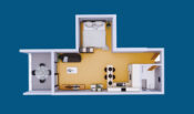 Эта студия с нишей находится на втором этаже 10-этажного жилого здания Cecilia. Общая площадь составляет 69 квадратных метров, что предоставляет достаточно места для комфортного проживания. Планировка включает в себя один санузел. Особенностью этой студии является наличие балкона площадью 9 квадратных метров, где можно отдохнуть и насладиться свежим воздухом. Кроме того, студия продается с мебелью и техникой, что делает ее готовой для проживания сразу после приобретения. Стоимость 126 500 £.