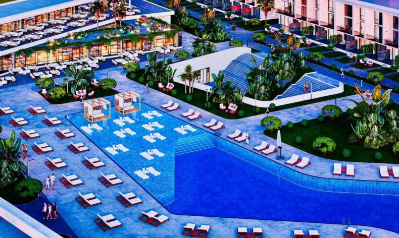На территории жилого комплекса будут большие общественные бассейны, торговая улица, рестораны, крытый бассейн, СПА, фитнес-центр, пикниковая зона, аквапарк, спортивные площадки, торговый ряд магазинов, роскошные лаунж-зоны, бары у бассейна, рестораны и многое другое.