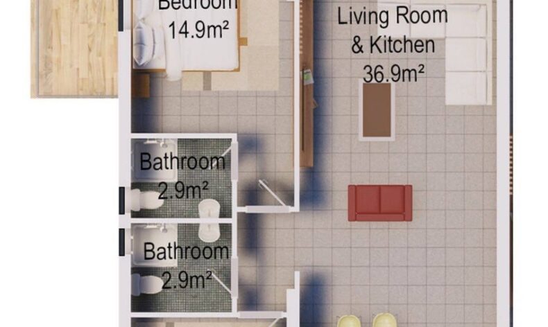 Эксклюзивные апартаменты с двумя спальнями. Дизайн пакет включен. Стоимость 135 450 £.