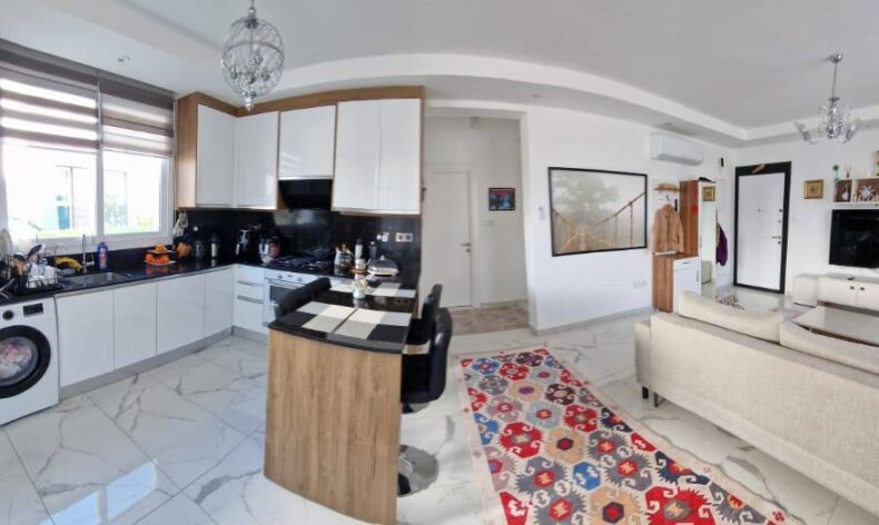На продажу выставлена эксклюзивная квартира 2+1 в масштабном жилом комплексе Four Seasons Life. Квартира находится в граунде и укомплектована мебелью, встроенной кухней и техникой из пяти бытовых приборов (стиральная машинка, микроволновка, холодильник, духовой шкаф и духовая плита). Налоги оплачены. Стоимость 323 000 £.
