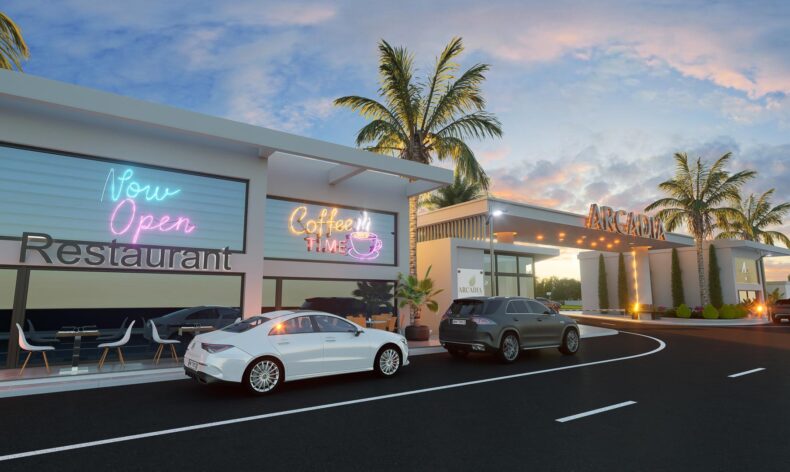 Жилой комплекс Arcadia на 300 квартир строится в перспективном районе, в шаговой доступности от моря. До популярного песчаного пляжа Лонг Бич можно доехать на машине за 7-10 минут. Инфраструктура комплекса включает: благоустроенную закрытую территорию, бассейн и аквапарк, ресторан, тренажерный зал и спа-комплекс, теннисный корт, футбольное и баскетбольное поле, мини-гольф, амфитеатр.