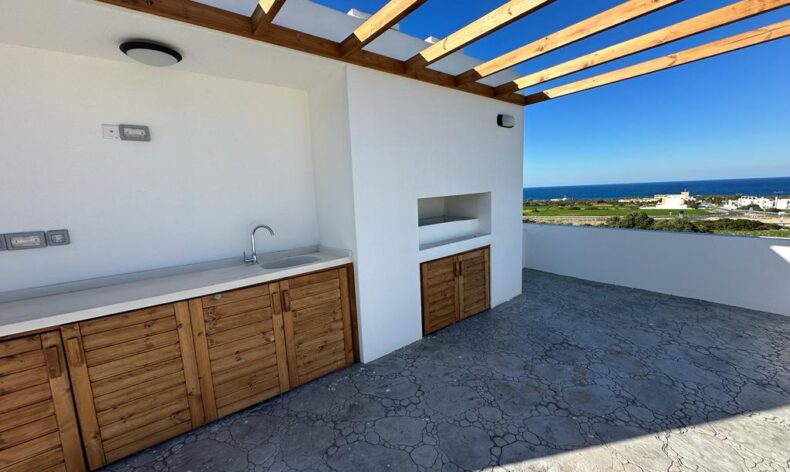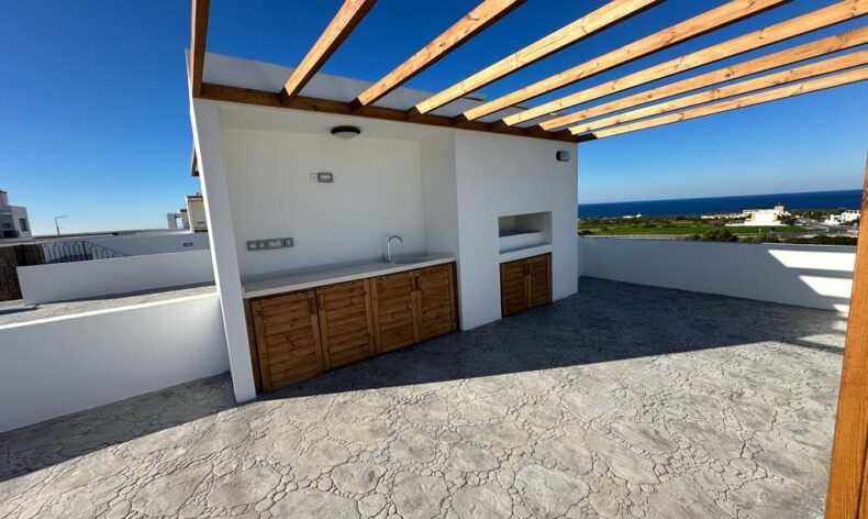 На благоустроенной и закрытой территории комплекса предусмотрена разнообразная инфраструктура, которая включает в себя: открытый бассейн, ландшафтный дизайн, бар, спортивные площадки, зоны отдыха, зоны для медитаций и пилатеса, прогулочные дорожки и парковку. Проект находится недалеко от лучшей марины острова и самого популярного пляжа с белым песком на Северном Кипре – Золотого пляжа Карпаз.