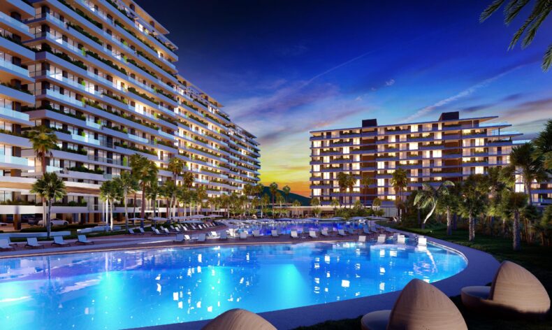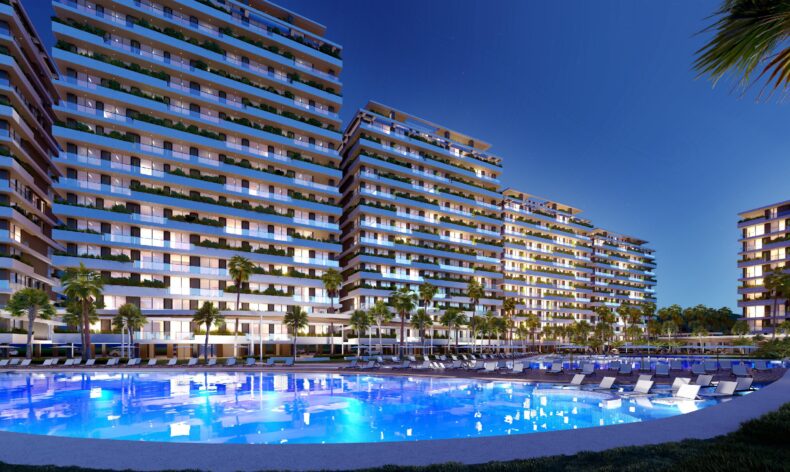 Проект состоит из трех высотных зданий: 27, 29 и 31 этаж, и семи пятиэтажных зданий, а также пятизвёздочного курортного отеля. Жилой комплекс состоит из 1630 роскошных апартаментов с первоклассной отделкой и современным дизайном: студии, однокомнатных, двухкомнатных, трехкомнатных и четырехкомнатных, а также дуплекс-апартаментов. Светлые и просторные жилые помещения созданы в соответствии с высочайшими эстетическими и технологическими стандартами, чтобы чувствовать себя идеально, чтобы вбирать в себя все естественные оттенки и свежий воздух, которые дает средиземноморская среда. Чистые, минималистичные линии с широким остеклением и балконами окунут вас в мир жизненных красок. Все квартиры продаются в готовности «под ключ» с панорамным видом на море и горы. Продажа апартаментов в шести новых блоках F — от 9 до 17 этажей, 682 квартир.
