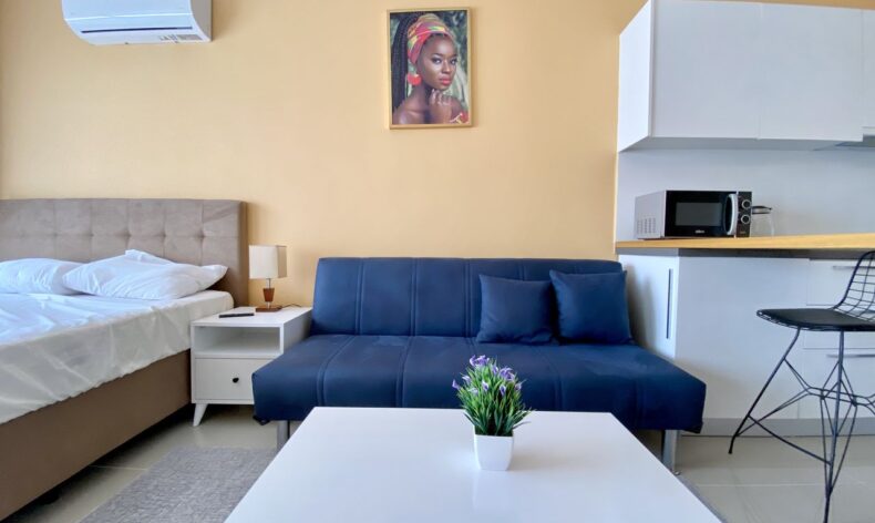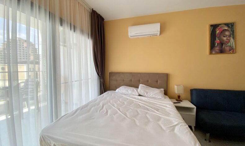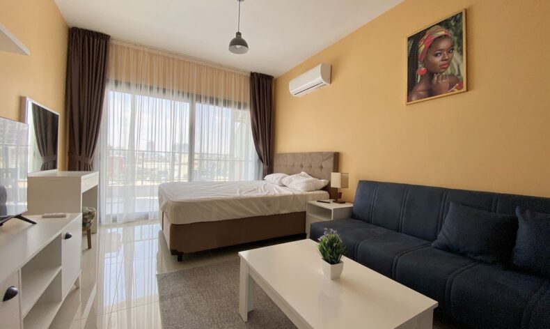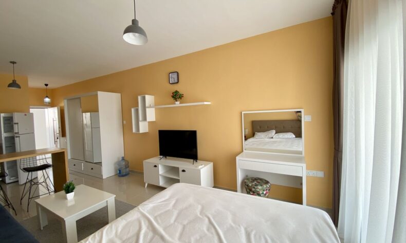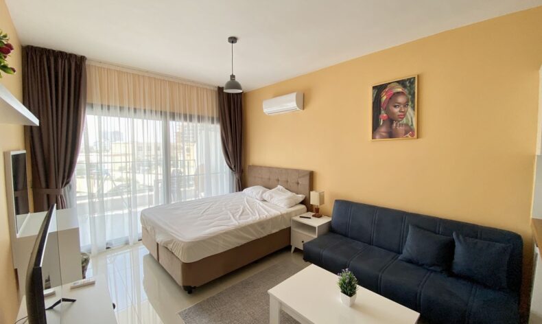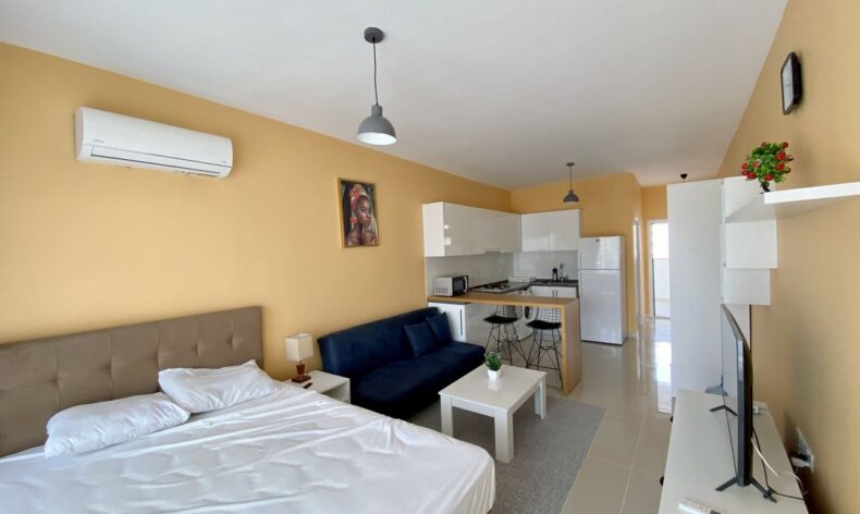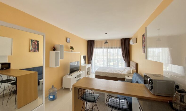 В продаже уютная квартира-студия в жилом комплексе Цезарь Резорт, в непосредственной близости от пляжей Лонг Бич в районе Искеле.