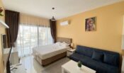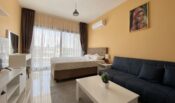 В продаже уютная квартира-студия в жилом комплексе Цезарь Резорт, в непосредственной близости от пляжей Лонг Бич в районе Искеле.