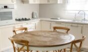 На первом этаже расположена отдельная кухня с теплым полом, оборудованная всей необходимой техникой, включая стиральную машину Bosch. Также на этом этаже находится прачечная с кладовкой, что обеспечивает удобство для хранения и стирки.
