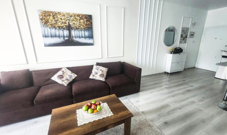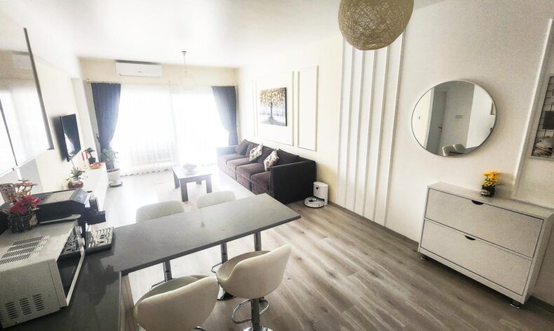 Особое внимание заслуживает терраса площадью 8,6 кв.м, где можно наслаждаться свежим воздухом и прекрасными видами. Квартира полностью меблирована и оснащена современной техникой, что позволяет вам сразу же почувствовать себя как дома и наслаждаться высоким уровнем комфорта и уюта. Стоимость 143 000 £.