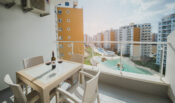 Современный высотный комплекс, окруженный цветущими садами и деревьями, расположенный в 6оо метрах от песчаного живописного пляжа, идеально подходит как для отпуска, так и для постоянного проживания.