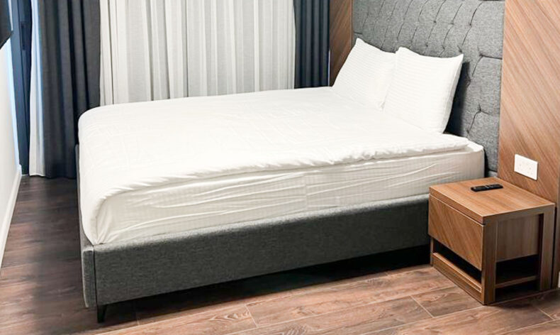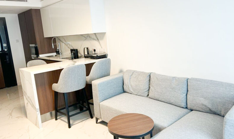 Первый жилой блок А — 27 этажей, 420 квартир и имеет бассейн и бар на последнем этаже.