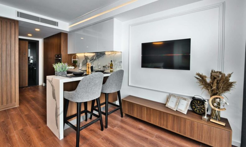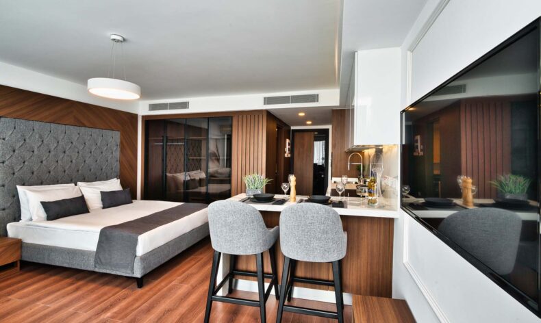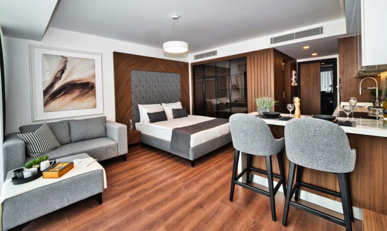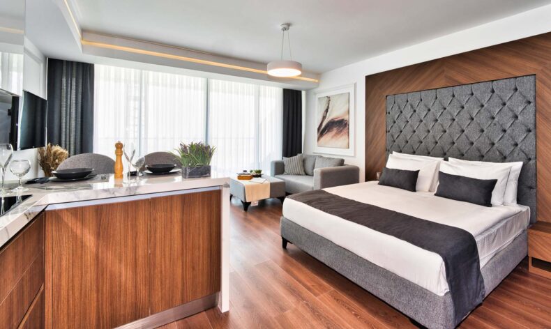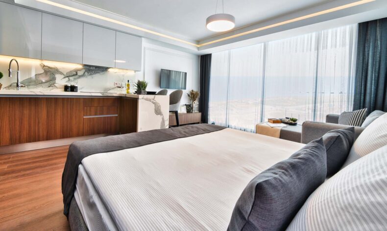 Проект состоит из трех высотных зданий: 27, 29 и 31 этаж, и семи пятиэтажных зданий, а также пятизвёздочного курортного отеля. Жилой комплекс состоит из 1630 роскошных апартаментов с первоклассной отделкой и современным дизайном: студии, однокомнатных, двухкомнатных, трехкомнатных и четырехкомнатных, а также дуплекс-апартаментов. Светлые и просторные жилые помещения созданы в соответствии с высочайшими эстетическими и технологическими стандартами, чтобы чувствовать себя идеально, чтобы вбирать в себя все естественные оттенки и свежий воздух, которые дает средиземноморская среда. Чистые, минималистичные линии с широким остеклением и балконами окунут вас в мир жизненных красок. Все квартиры продаются в готовности «под ключ» с панорамным видом на море и горы.