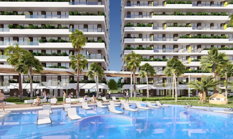 Проект состоит из трех высотных зданий: 27, 29 и 31 этаж, и семи пятиэтажных зданий, а также пятизвёздочного курортного отеля. Жилой комплекс состоит из 1630 роскошных апартаментов с первоклассной отделкой и современным дизайном: студии, однокомнатных, двухкомнатных, трехкомнатных и четырехкомнатных, а также дуплекс-апартаментов. Светлые и просторные жилые помещения созданы в соответствии с высочайшими эстетическими и технологическими стандартами, чтобы чувствовать себя идеально, чтобы вбирать в себя все естественные оттенки и свежий воздух, которые дает средиземноморская среда. Чистые, минималистичные линии с широким остеклением и балконами окунут вас в мир жизненных красок. Все квартиры продаются в готовности «под ключ» с панорамным видом на море и горы. Продажа апартаментов в шести новых блоках F — от 9 до 17 этажей, 682 квартир.