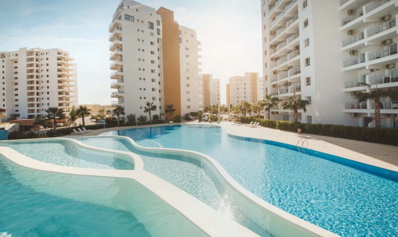 Современный высотный жилой комплекс, расположенный на берегу Северного Кипра, недалеко от города Искеле. Он всего в трех минутах ходьбы от Лонг-Бич. Искеле — это небольшой город на Северном Кипре, расположенный в восточной части острова. Он соседствует с городом Фамагуста и окружен пляжами и неповторимыми местами для отдыха.