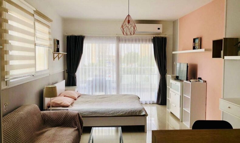 Эксклюзивная квартира студия на втором этаже дома Alexius. Студия площадью 46 м² и терраса 8 м². Вид на бассейн. Планировка R2. Дизайн пакет. Мебель и техника в подарок. Налоги оплачены. Стоимость 49 000 £.