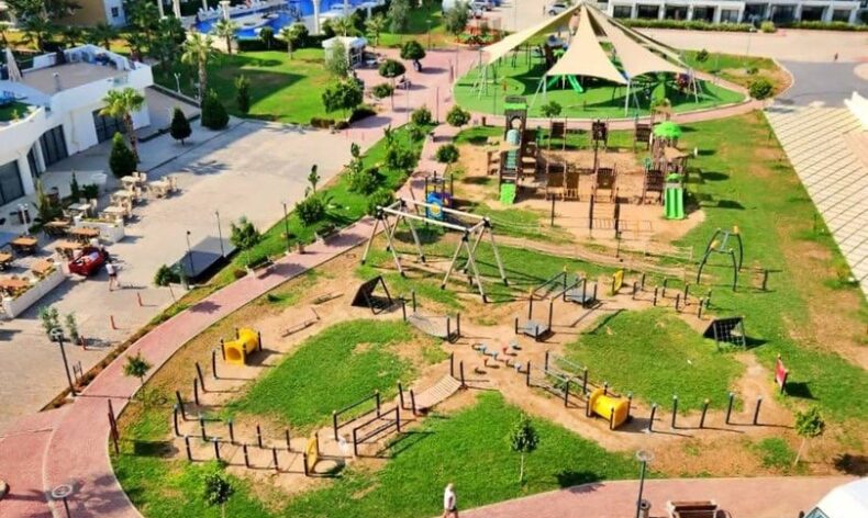 На охраняемой территории комплекса расположена удобная инфраструктура уровня пятизвездочного отеля, которая включает в себя: фитнес-центр с опытными инструкторами, СПА-центр, крытый бассейн и сауну, массажную комнату, аква-парк, множество бассейнов, джакузи на открытом воздухе. Ландшафтный дизайн комплекса включает 17000 м2 ухоженных газонов с цветочными клумбами и цветущими деревьями, которые обеспечат жителям и гостям комплекса комфорт в жаркий полдень. На территории комплекса есть зоны активного отдыха: теннисный корт, футбольная и волейбольная площадки, мини-гольф. Здесь вы найдете ресторан, снек-бар, кофейню и зону для пикников и многое другое.