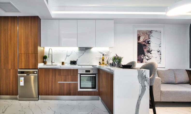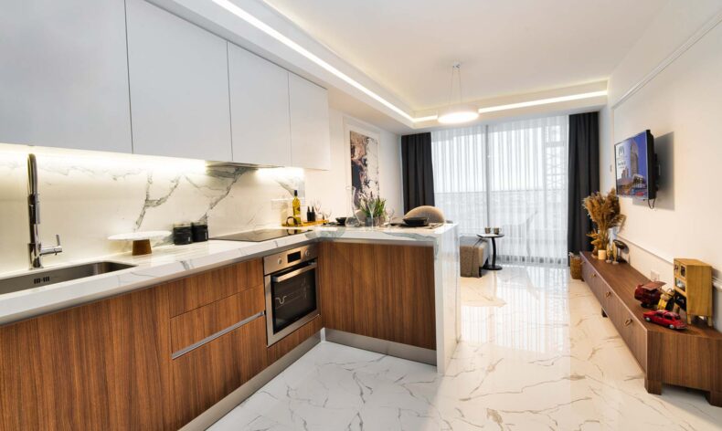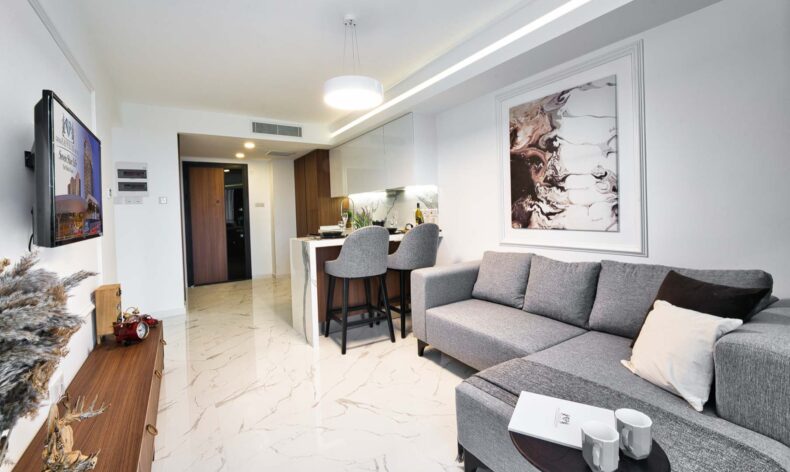 Проект состоит из трех высотных зданий: 27, 29 и 31 этаж, и семи пятиэтажных зданий, а также пятизвёздочного курортного отеля. Жилой комплекс состоит из 1630 роскошных апартаментов с первоклассной отделкой и современным дизайном: студии, однокомнатных, двухкомнатных, трехкомнатных и четырехкомнатных, а также дуплекс-апартаментов. Светлые и просторные жилые помещения созданы в соответствии с высочайшими эстетическими и технологическими стандартами, чтобы чувствовать себя идеально, чтобы вбирать в себя все естественные оттенки и свежий воздух, которые дает средиземноморская среда. Чистые, минималистичные линии с широким остеклением и балконами окунут вас в мир жизненных красок. Все квартиры продаются в готовности «под ключ» с панорамным видом на море и горы.
